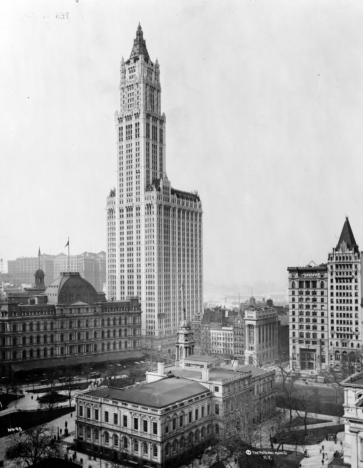 To check, I downloaded a list of building footprints from nyc.gov and just ran some numbers on how many square feet of floor space. I assumed all buildings in the city had the same shape at the top floor as at the ground, which is spectacularly wrong–after the 1916 zoning code, most tall buildings were supposed to imitate the tiered floorplan of the Woolworth building–so this should be taken as an upper limit, not a description of fact. But the building stock in the city is old enough that I doubt it’s an egregious overestimate: I’d guess, wildly, that this overstates floor space by five to thirty percent. (Even with this assumption, half of all floor space in the city is in buildings of five or fewer floors; I also assume that no buildings have basements, when in fact most do.)